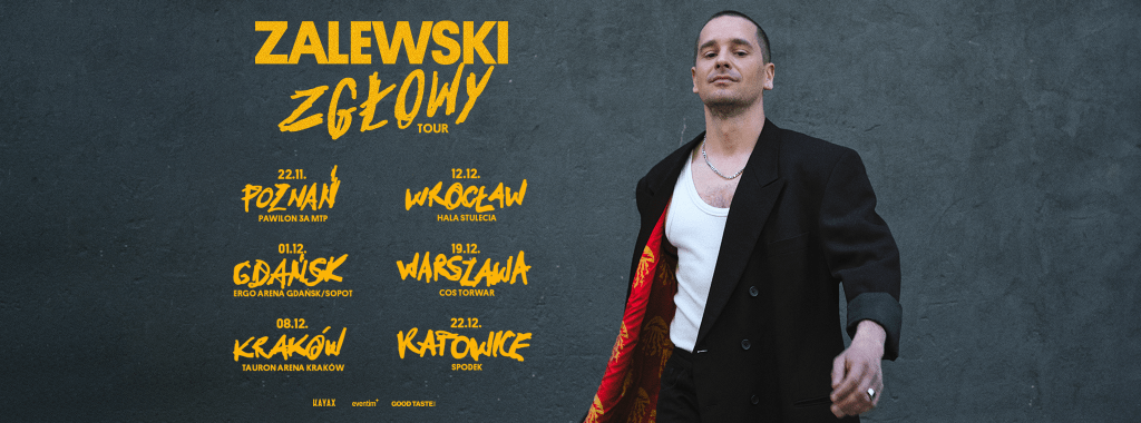 Krzysztof Zalewski rusza także w trasę koncertową – ZGŁOWY TOUR. Halowe koncerty w sześciu miastach już tej zimy! Sześć miast, sześć hal, sześć niezapomnianych koncertów. Artysta wkracza w zupełnie nowy, artystyczny etap i wyrusza w trasę koncertową promującą nadchodzący album! Nowy materiał zabrzmi w Poznaniu, Gdańsku, Krakowie, Wrocławiu, Warszawie i Katowicach.